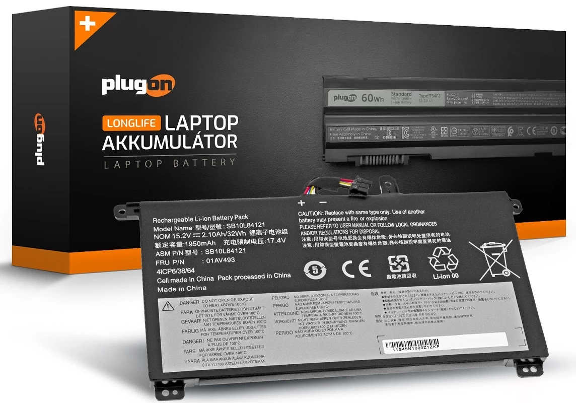PlugOn saját márkás akkumulátor, kiváló A+ minőségű japán cellákkal, garantált megbízhatósággal és hosszú élettartam – 01AV493 15.2V 2040mAh 32Wh új laptop akkumulátor.