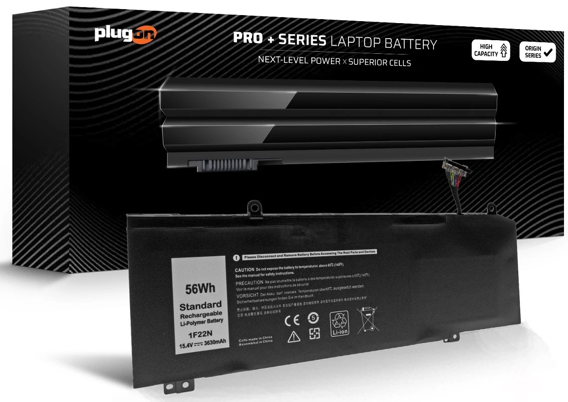 PlugOn Pro a saját márkás akkumulátorunk prémium változata, prémium A+ minőségű japán cellákkal, garantált megbízhatósággal és hosszú élettartammal – 1F22N 15.4V 3630mAh 56Wh új laptop akkumulátor.
