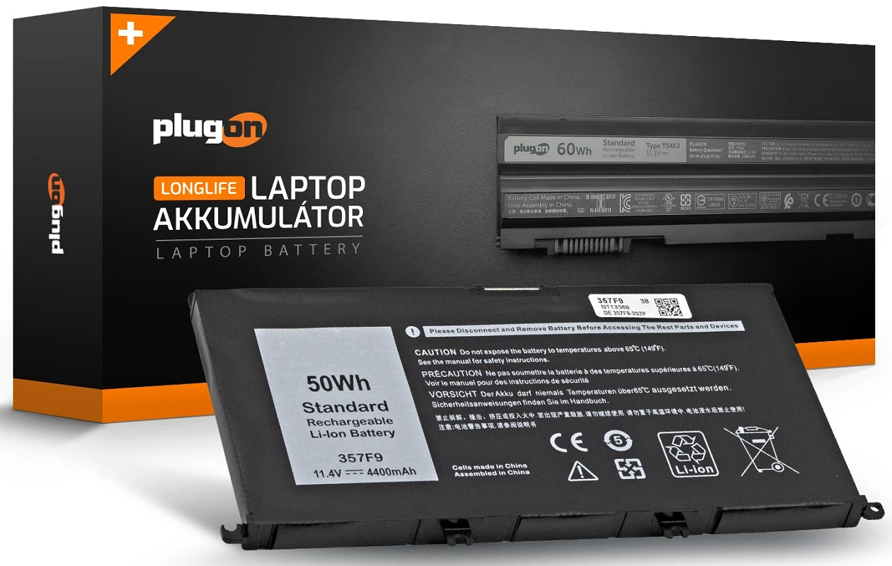 PlugOn saját márkás akkumulátor, kiváló A+ minőségű japán cellákkal, garantált megbízhatósággal és hosszú élettartam – 357F9 11.4V 4400mAh 50Wh új laptop akkumulátor.