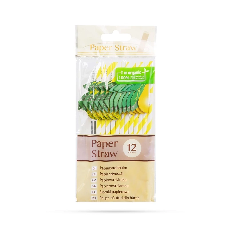 A papír szívószálak széles körben használatosak különböző rendezvényeken, bulikon és ünnepségeken. Ez a csomag 12 db papír szívószálat tartalmaz, amelyek 3D lampion gyümölcsökkel vannak díszítve. Kiváló választás nyári partik, családi összejövetelek, gyerekzsúrok, esküvők és különböző nyári partik alkalmával. A papír szívószálak ökológiai lábnyoma kisebb mint a műanyag társaiké, így környezetbarát alternatívát jelentenek. A szívószálak hossza 20 cm, ami ideális magas, keskeny pohárból történő italfogyasztáshoz is. Tegye különlegessé az italokat vidám gyümölcsös szívószálakkal!