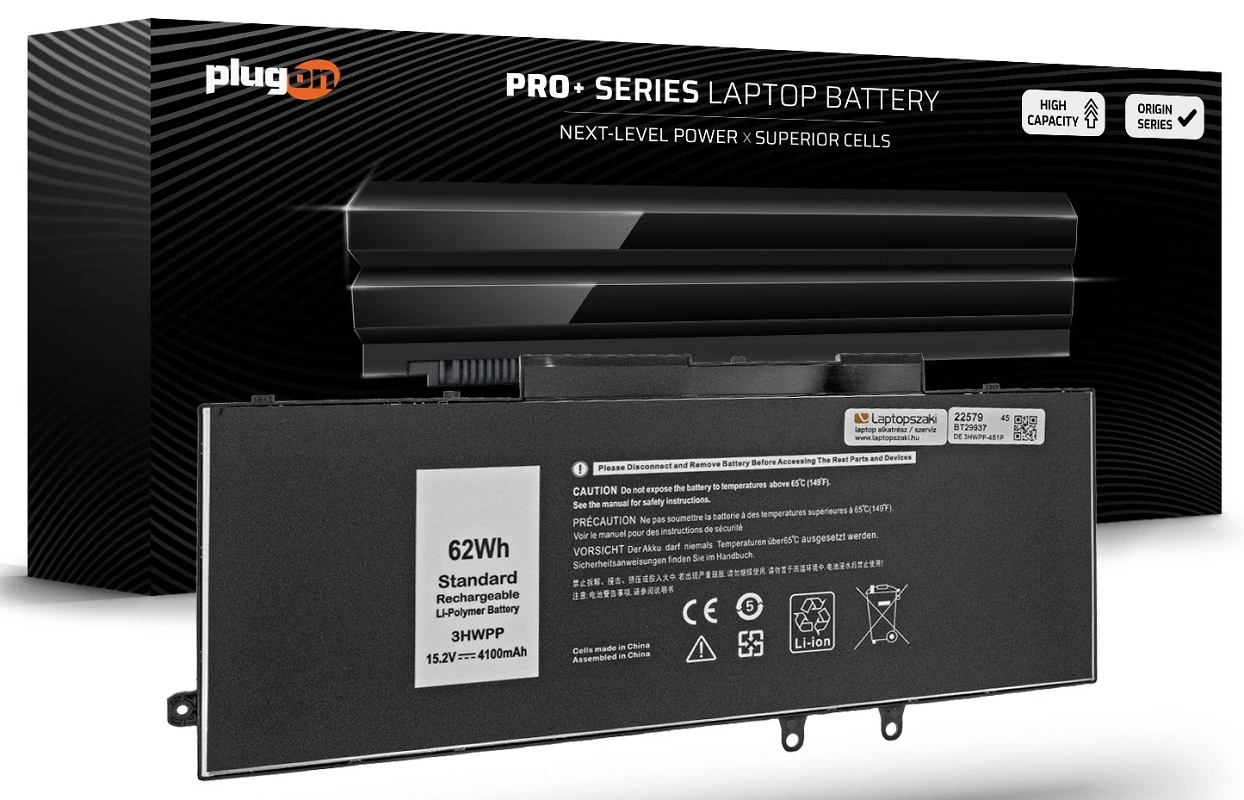 PlugOn Pro a saját márkás akkumulátorunk prémium változata, prémium A+ minőségű japán cellákkal, garantált megbízhatósággal és hosszú élettartammal – 3HWPP 15.2V 4100mAh 62Wh új laptop akkumulátor.
