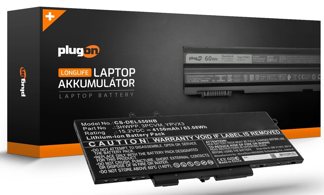 PlugOn saját márkás akkumulátor, kiváló A+ minőségű japán cellákkal, garantált megbízhatósággal és hosszú élettartam – 3HWPP 15.2V 4150mAh 63Wh új laptop akkumulátor.