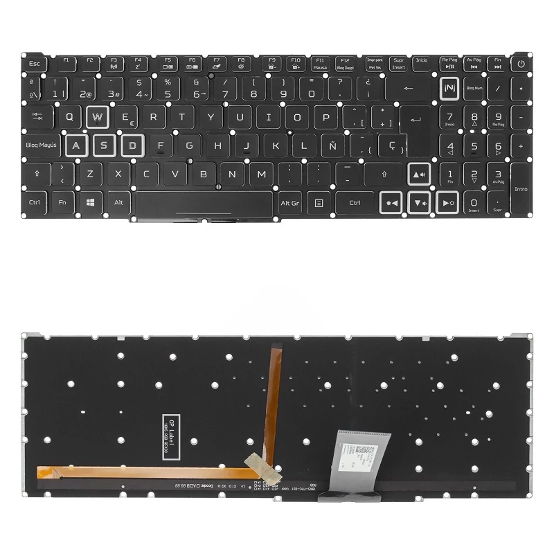 6B.Q84N2.052 gyári új, spanyol RGB háttérvilágításos laptop billentyűzet, keret nélkül