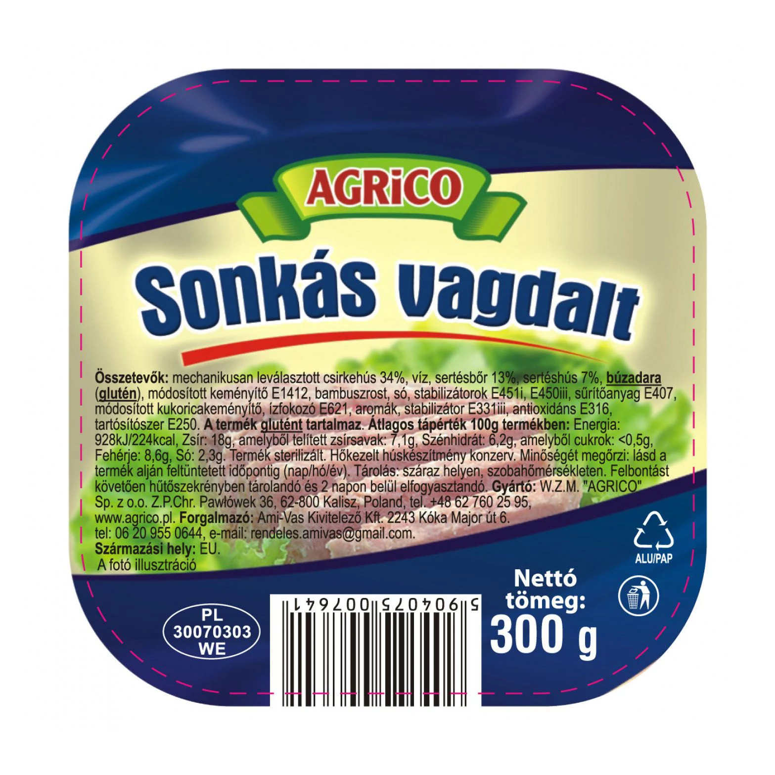 mechanikusan leválasztott csirkehús 34%, víz, sertésbőr 13%, sertéshús 7%, búzadara (glutén), módosított keményítő E1412, bambuszrost, só, stabilizátorok E451i, E450iii, sűrítőanyag E407, módosított kukoricakeményítő, ízfokozó E621, aromák, stabilizátor E331iii, antioxidáns E316, tartósítószer E250. A termék glutént tartalmaz.
