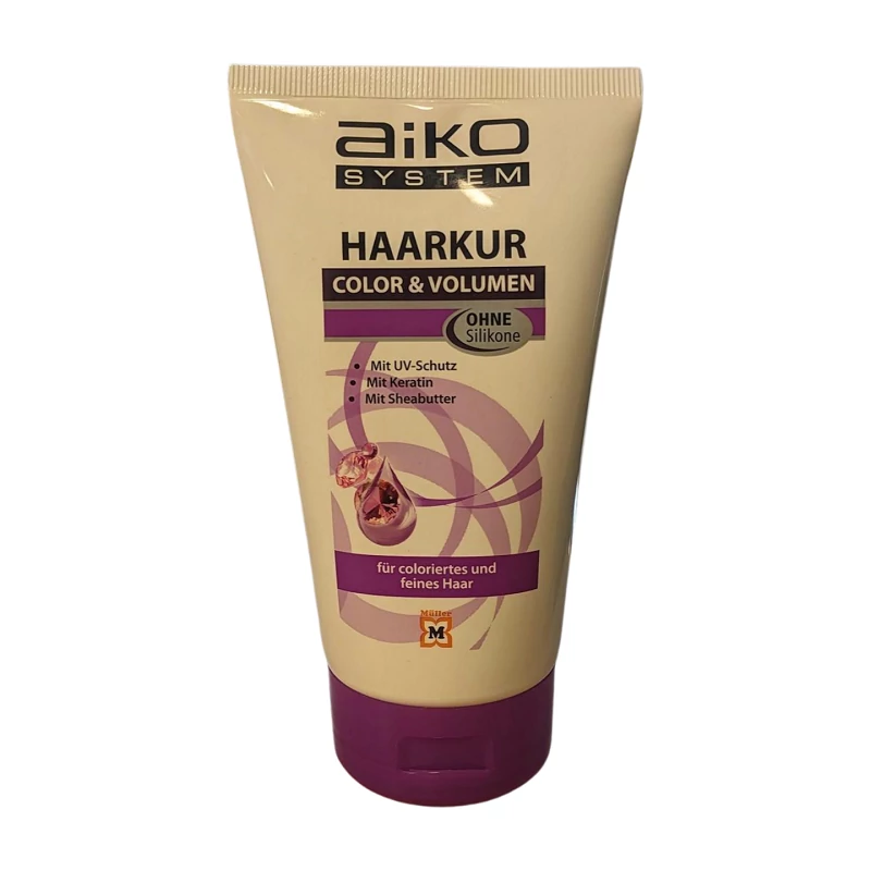 Szilikonmentes, UV-védelemmel, keratinnal és sheavajjal.. Az aiko system hajápoló termékcsalád 4 lépésben ápolja a haját. A speciálisan a 3. lépésként kifejlesztett aiko color & volumen hajpakolás ápolja és erősíti a mindennapi igénybevételnek kitett hajat, a lágy összetevőinek, mint pl. sheavaj, keratin, B5 pro-vitamin, UV-védő anyagoknak köszönhetően. A haj erős, selymesen fénylő és egészséges lesz.