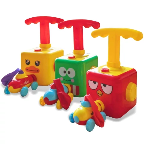 Bizonyára mindenki ismeri azt a jelenséget, amikor egy felfújt lufit elengedünk és az sebesen ide-oda cikázva száll keresztül a szobán. Ez a viselkedés a lufiban található légnyomásnak köszönhető, mely ennek a fantasztikus játéknak is az alapját képezi. Minden szettben egy jópofa pumpa található, 2db kisautóval és 8db lufival. A kiskocsik tetejére kell erősíteni a lufikat és a pumpával felfújni azokat. Ha elkészültünk, akkor útjára is engedhetjük a kiskocsikat, a légnyomásnak köszönhetően sebesen száguldanak majd át a szobán. A feltüntetett ár egy szettre értendő, melyet kérünk a megrendelés feladásakor a "megjegyzés" menüpontban jelezni.