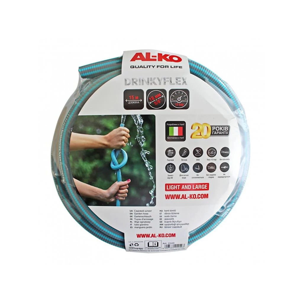 15m; Törés és csavarodás mentes; ivóvíz szállításra is!; Max. nyomás: 12 bar felett; Belső átmérő: 12,5 mm; Külső átmérőr 16 mm; átfolyás: 1800 lt/h; nagyon könnyű; környezetbarát előállítás, nagyobb belső átmérő ugyanakkora külső méret mellett - > nagyob
