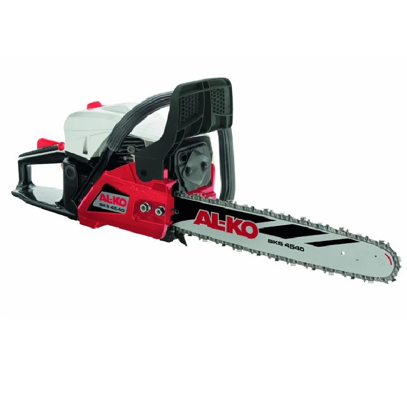 AL-KO benzinmotoros láncfűrész. Új modell, 2014 évi tervezés. A 45 cm3 motor és a 40 cm láncvezető miatt az egyik legerősebb otthoni célú láncfűrész. Viszonylag erős, de még nem túl nehéz, jellemzően egyszerűbb munkákra használható. A benzines láncfűrész alkalmas tűzifa darabolásra, kerti munkákra, gallyazásra, fakivágásra is. Az AL-KO BKS 4540 inításkönnyitő rendszerrel szerelt, gyengébb fizikumú felhasználók is könnyen berántják. Azoknak a felhasználókna ajálnjuk, akiknek az AL-KO BKS 4040 láncfűrésznél nagyob teljesítményre van szükségük. Felszereltségébe természetesen beletartozik a fém rönktámasz, az automata olajzás, a biztonsági láncfék, rezgéscsillapító rugóbak. A láncvezető és a fűrészlánc OREGON gyártmány. TÁROLÁS 1 Ürítse le az üzemanyagtankot, és használja fel a maradékot a motor járatásával. 2 Ürítse le az olajtartályt. 3 Tisztítsa meg a láncfűrészt. 4 A szerszámot őrizze száraz, zárt, gyermekek által el nem érhető helyen. A fenti leírást a gyártó honlapja alapján (www.al-ko.hu) készítette. Ennek másolása, 2,3 LE 2,3LE, 45ccm, 40cm-es láncvezető, 21m/s-os láncsebesség, oregon lánc és láncvezető. Kiváló ergonómia, hosszú élettartamot biztosító, első osztályú mechanika. Csomagolási méret: 31 x 28 x 46 cm