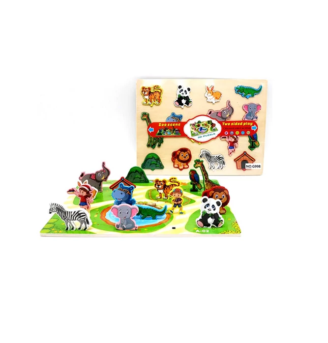 A kicsik fejlődésében nagy szerepet töltenek be különböző fejlesztőjátékok, amihez most egy fa puzzle-t hoztunk el neki. A puzzle egy fa táblán érkezik, melyben az állatkert különböző állatait találja majd gyermeked, amiket a saját formájukba kell bele illeszteni. Ezen kívül a puzzle tábláját megfordítva egy állatkert kertje tárul elénk, ahol felállítva lehet az állatokat elhelyezi, mindegyiket a neki legmegfelelőbb helyre, így még jobb lesz majd a játék élménye. Szerezd be és kezdődhet is az ismerkedés az állatokkal.