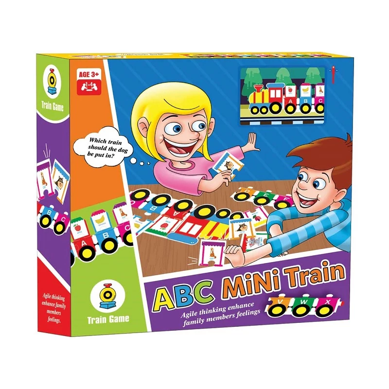 A játék során a gyerekek megismerhetik az angol ABC betűit, úgy, hogy a képeket a vonat megfelelő betűjéhez rakják. A játék mérete: 21 x 21 cm dobozban.