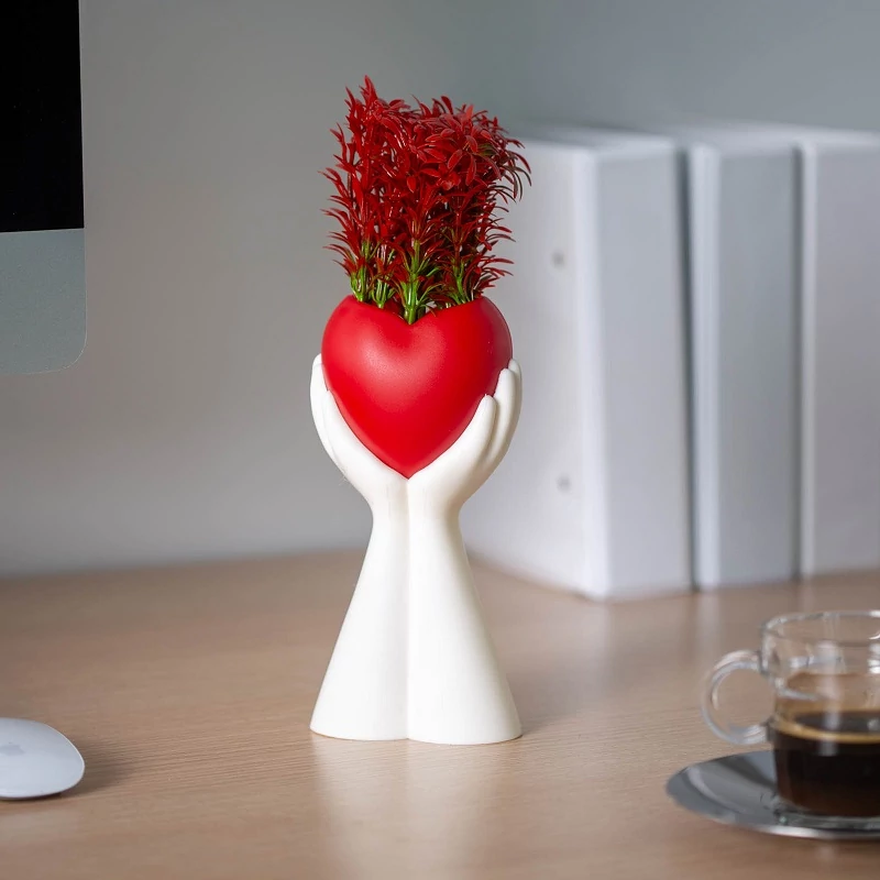 Dekoratív, gondozásmentes műnövény piros szív motívummal, 10 x 35 cm méretben, vidám és szívmelengető dizájnnal, tökéletes Anyák napi ajándék édesanyáknak, nagymamáknak vagy szeretteiknek otthoni dekorációként vagy asztaldíszként.