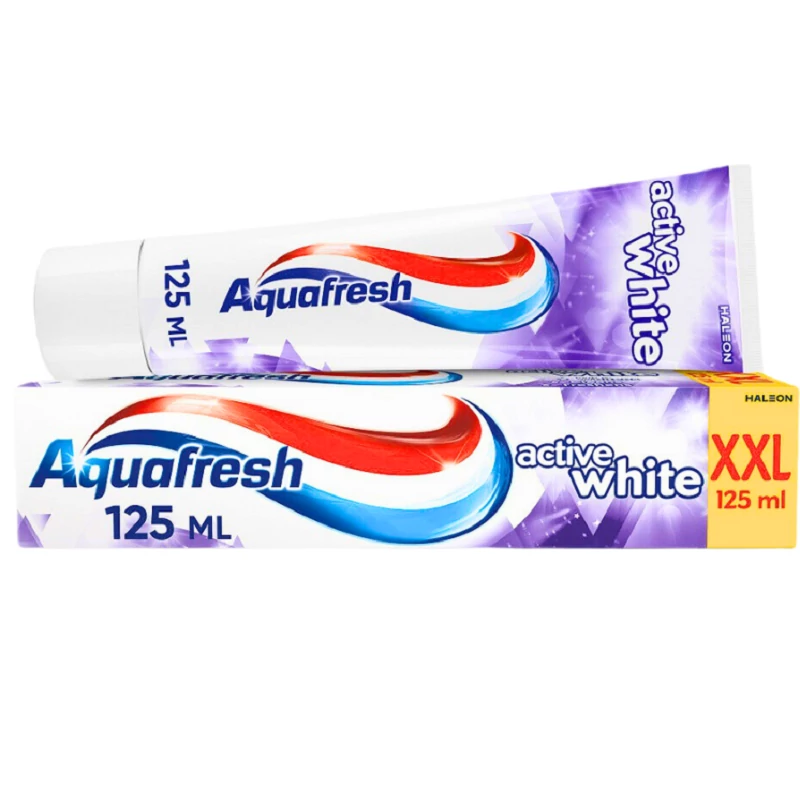 Az Aquafresh Active White fogkrém fehérítő hatása mellett, alaposan tisztítja a fogakat és friss leheletet biztosít.