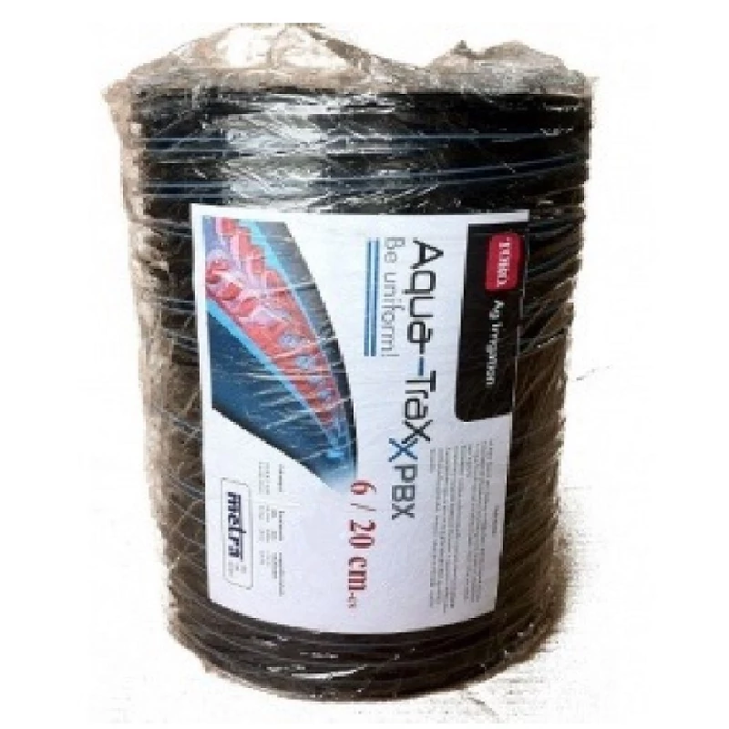 Falvastagság: 6mil (0,15mm) Osztás: 20 cm Üzemi nyomás: 0,3 - 0,8 bar Vízkibocsátás: 1,14 liter/óra nyílás Kiszerelés: 200m/tekercs Súly: 2kg Az Aqua-Traxx csepegtetőszalag ideális megoldást nyújt: Sekélyen gyökeresedő gyümölcskultúrák (pl. szamóca), zöldségnövények (pl. fejessaláta), közepesen mélyen gyökeresedő zöldségkultúrák (pl. paprika), évelő zöldségfélék (pl. articsóka) és dohányültetvények, faiskolák, szegfű, gerbera, rózsa és egyéb sorban nevelt dísznövények hatékony és gazdaságos öntözésére. Telepítése egyszerű, munka- és időtakarékos. Egyszeri extrudálással készül, nincs varrat, éles szélek, vagy hegesztés. Eltömődéssel szemben rendkívül ellenálló: csepegőnyílásonként számtalan beépített szűrőlyukacska biztosítja a folyamatos és egyenletes vízkibocsátást.