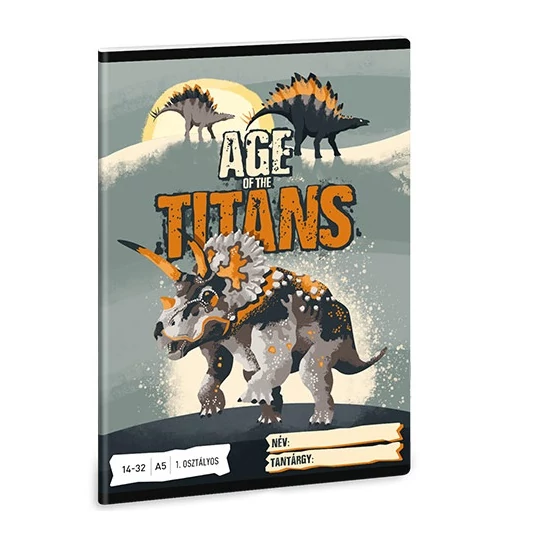 Az Age of the Titans füzet a titánok korára emlékeztet, amikor a dinoszauruszok uralták a földet. Egy ilyen füzet, amelyen ez a felirat látható és mellette 3 dinó, biztosan beválik a gyermekek körében, főleg azoknál akik imádják ezeket az őslényeket. Az A/5 méretű füzet könnyedén elfér a táskában vagy hátizsákban, így mindig kéznél van a fontos feljegyzésekhez és ötletekhez. A füzet 32 vonalas lapot tartalmaz, amelyek segítik a gyermekedet a rendezett írásban és rajzolásban. A szabványos 1.osztályos vonalazású termék kiválóan alkalmas a betűk és a szavak írásának megtanulására. Kis iskolás gyermeked biztosan örömmel fogja kezébe venni a ceruzát és gyakorolja majd az írást ennek a füzetnek a segítségével. A termék széleit lekerekítették, így téve lehetővé azt, hogy a gyűrődésektől és a szamárfülektől leginkább védve legyen.