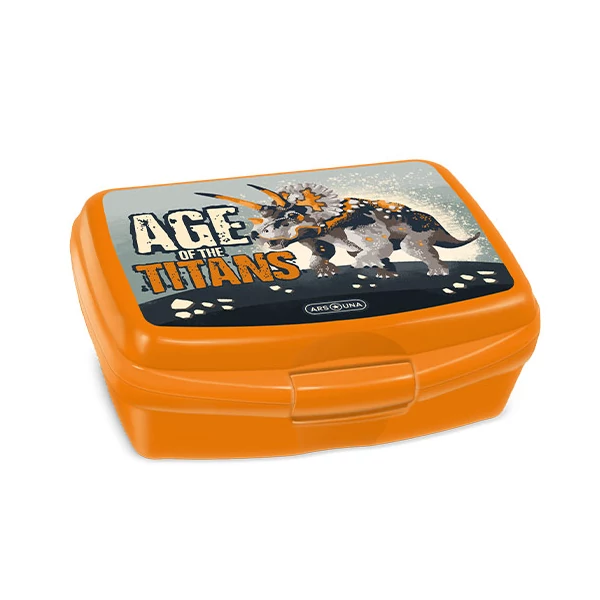Ez az uzsonnás doboz visszavezet abba az időbe, amikor a földön még a dinoszauruszok uralkodtak, hiszen felső burkolatán pontosan egy ilyen példány szerepel. Ez az egyedi kinézetű doboz elég nagy ahhoz, hogy beleférjen a kis iskolás napi eledele. Bár az uzsonnás doboz nincs hatással a benne tárolt szendvics ízére, azért nagyon is ötletes megoldás, mert az étel nem nyomódik össze a könyvektől, így az étel is gusztusosabb marad, ráadásul praktikusan zárható, így nem kell a morzsákat takarítani a hátizsákból.