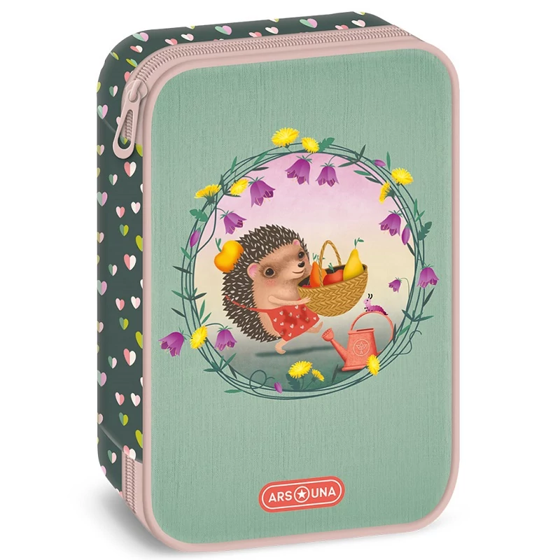 Az Ars Una Apple Pie többszintes tolltartó ideális választás minden lány számára, aki szereti a bájos, sünis mintát és szeretne rendszert teremteni írószerei számára. A pasztell zöld alapon jelenő sünis minta vidámságot és egyedi stílust kölcsönöz ennek a praktikus tolltartónak.