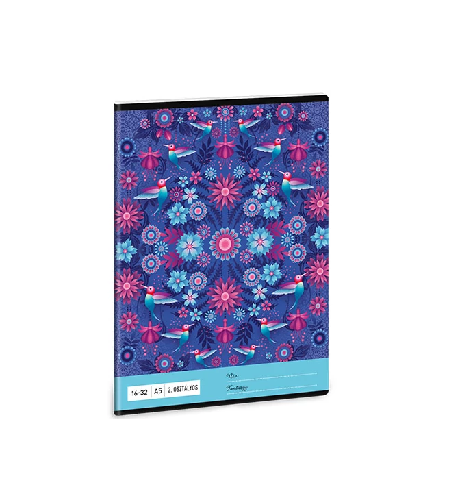 A második osztályos gyerekek számára még mindig egyedi vonalazású füzetek kellenek, így ez a különleges kék alapszínű, mandalás kolibri mintás füzet remek és egyedi választás lehet a számukra. A szabványos 2.osztályos vonalazású termék kiválóan alkalmas olyan órákra, ahol vonalas füzetbe kell jegyzetelni. Kis iskolás gyermeked biztosan örömmel fogja kezébe venni a ceruzát és gyakorolja majd az írást ennek a füzetnek a segítségével. A termék vastagabb borítót kapott és a sarkait lekerekítették, így téve lehetővé azt, hogy a gyűrődésektől és a szamárfülektől leginkább védve legyen.