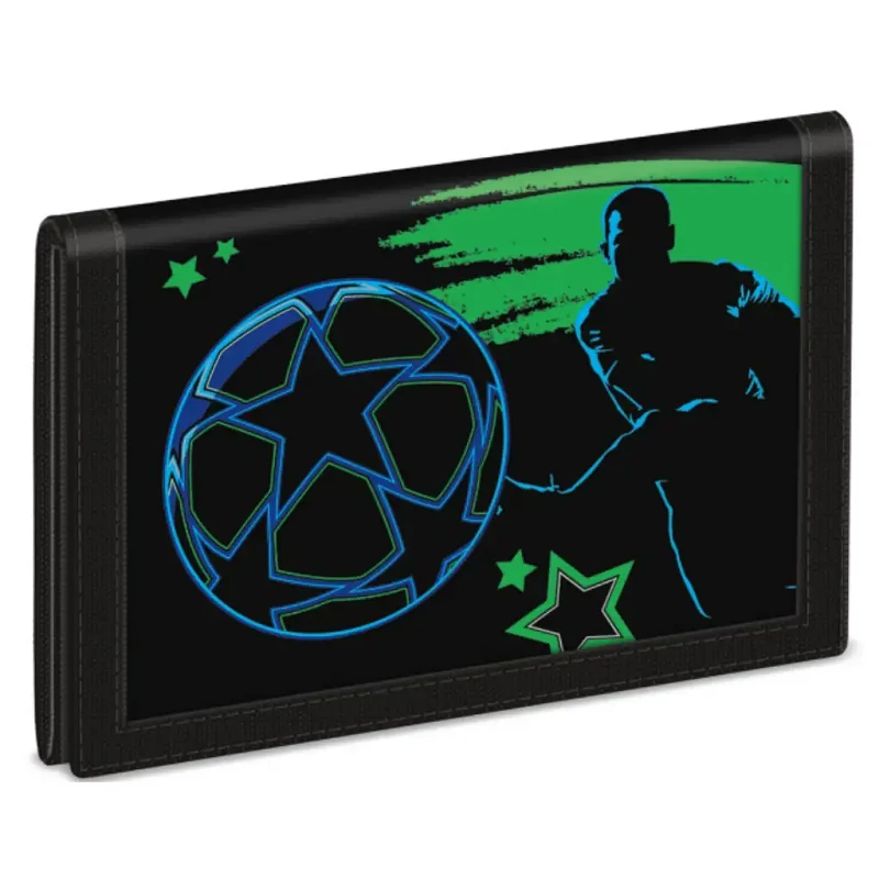 Az Ars Una Champs pénztárca tökéletes választás, ha focirajongó gyerkőcödnek keresel vagány és praktikus kiegészítőt! A látványos, focis mintás dizájn garantáltan elnyeri a tetszését, a tépőzáras zárás pedig könnyű használatot biztosít a kisebb kezek számára is. A pénztárca belsejében négy kisebb zseb segít rendszerezni az iratokat és a papírpénzt, külön bérlettartó rekesz is helyet kapott, az aprópénz számára pedig cipzáras zseb áll rendelkezésre. Kompakt méretének köszönhetően könnyen elfér zsebben vagy iskolatáskában.