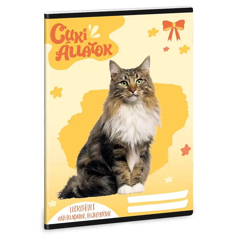 A Cuki állatok - Norvég erdei macska leckefüzet minden kisállatrajongó gyerek szívét megdobogtatja! A borítón egy gyönyörű, dús szőrű norvég erdei macska ül méltóságteljesen, meleg, sárgás háttérrel és kedves grafikai elemekkel körülvéve. Az A/5 méretű, 38 lapos füzet tökéletes választás házi feladatok, fontos iskolai jegyzetek vagy bármilyen egyéni feljegyzés számára.