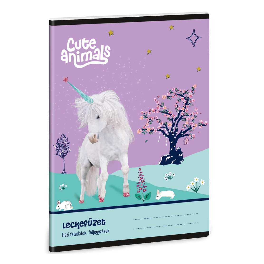 Varázsold el gyermeked iskolai hétköznapjait a Cute Animals Unikornis mintás leckefüzettel! Ez az A/5 méretű, 38 lapos füzet mesés dizájnjával már az első pillantásra elnyeri a gyerekek tetszését. A borítón egy bájos unikornis látható csillogó patákkal, álomszép háttérrel, virágzó fákkal, csillagokkal és aranyos nyuszikkal. A lila és türkiz árnyalatú grafika egy varázslatos világot idéz meg, amely minden tanulási pillanatot különlegessé tesz. A vidám megjelenés mellett a füzet praktikus kialakítása is segíti a napi feladatok rendszerezését.