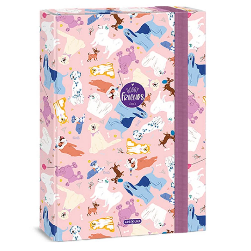- A/4-es füzetbox vidám, kiskutyás grafikával
