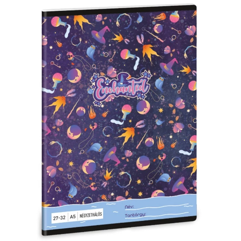 Merülj el a varázslat világában az Enchanted négyzethálós füzettel! Ez az A5-ös méretű füzet minden kisdiákot elbűvöl a misztikus és színes dizájnjával, amely tele van varázspálcákkal, kalapokkal és csillagokkal. A sötét, éjszakai égboltra emlékeztető borító igazi kalandokra hív, így a tanulás még izgalmasabbá válik.