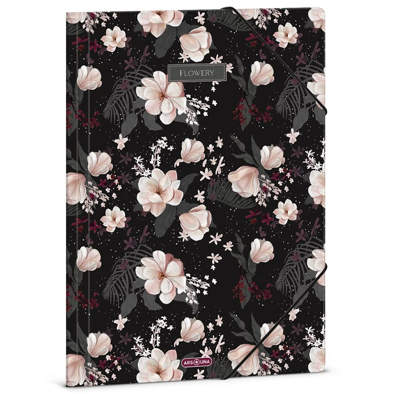 Ars Una: Flowery Black virágos gumis mappa A/4