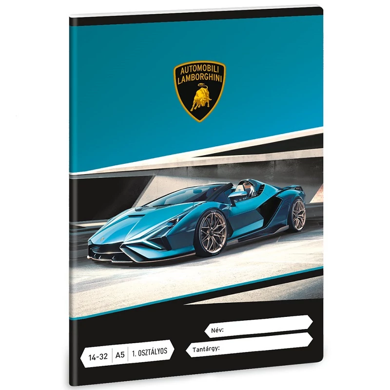 - Vonalas füzet elsősöknek, borítóján Lamborghini grafikával