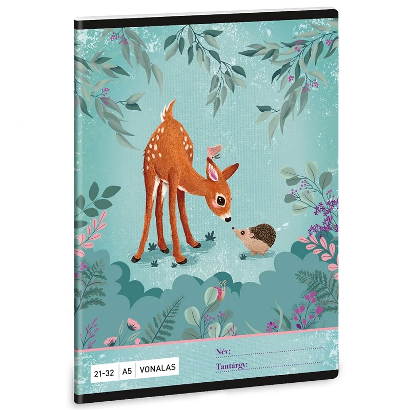 - Vonalas füzet alsósoknak negyedik osztálytól, borítóján őzikés grafikával