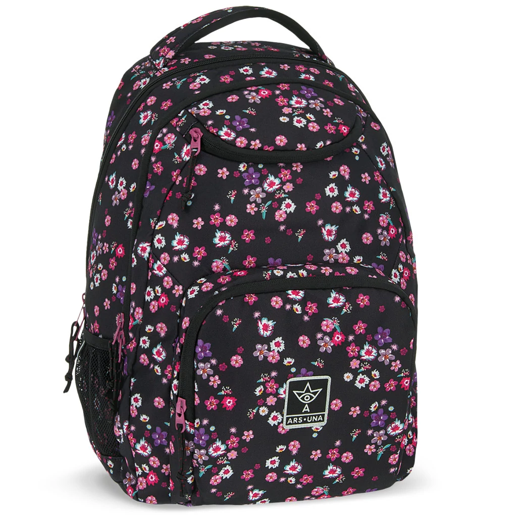 Az ARS UNA PEARL BLOSSOM BLACK hátizsák AU-6 ideális választás lehet a 4. osztálytól ajánlott lányok számára. Ez a hátizsák könnyű, prémium minőségű, erős és vízlepergető anyagból készült, így tökéletes mindennapi használatra és iskolába járáshoz is. Méretei 340x450x260 mm, és 26 literes űrtartalommal rendelkezik, ami elegendő helyet biztosít a könyveknek, tanszereknek és egyéb szükséges dolgoknak.