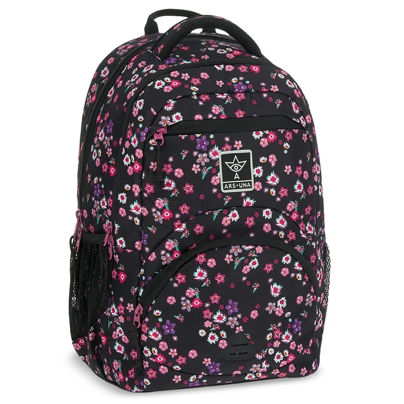 Ars Una: Pearl Blossom Black virágos ergonomikus iskolatáska, hátizsák 33x45x24cm