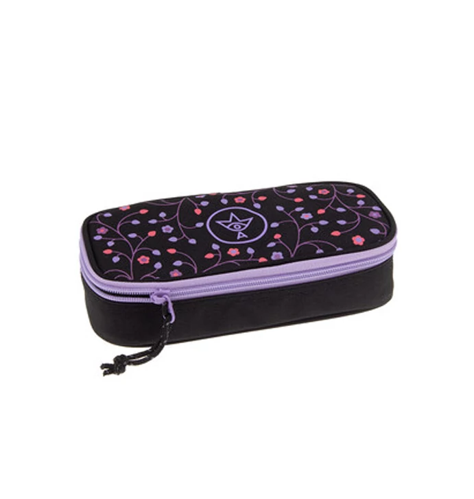 A fekete alapszínű tolltartó lila színű cipzárral és szintén lila virágos mintával rendelkezik amely igazán divatos megjelenést kölcsönöz használója számára az iskolai mindennapok során. A tolltartó 100% poliészter anyagból készült amelynek köszönhetően könnyedén tisztítható és strapabíró. A tolltartó egy kihajtható belső zsebbel is rendelkezik amely tovább bővíti a befogadó képességét és segít a különféle írószerek szortírozásában. A prémium minőségű cipzár jól bírja a mindennapos használatot. A cipzáras belső zsebben gyermeked akár a kisebb dolgokat is biztonságosan tárolhatja.