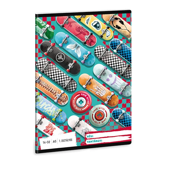 Minden gyermek szeretné úgy kezdeni az iskolaévet, hogy a legkülönlegesebb festésű füzetekkel rendelkezzen. A Rollin Mania füzetre biztosan mindenki felfigyelne, hiszen egy különleges színvilág jellemzi, amely mellett ott vannak a gördeszkák is. Ezek az elemek együttvéve vonzóbbá teszik és különlegesnek is egyaránt. Az A/5 méretű füzet könnyedén elfér a táskában vagy hátizsákban, így mindig kéznél van a fontos feljegyzésekhez és ötletekhez. A füzet 32 vonalas lapot tartalmaz, amelyek segítik a gyermekedet a rendezett írásban és rajzolásban. A szabványos 1.osztályos vonalazású termék kiválóan alkalmas a betűk és a szavak írásának megtanulására. Kis iskolás gyermeked biztosan örömmel fogja kezébe venni a ceruzát és gyakorolja majd az írást ennek a füzetnek a segítségével. A termék széleit lekerekítették, így téve lehetővé azt, hogy a gyűrődésektől és a szamárfülektől leginkább védve legyen.