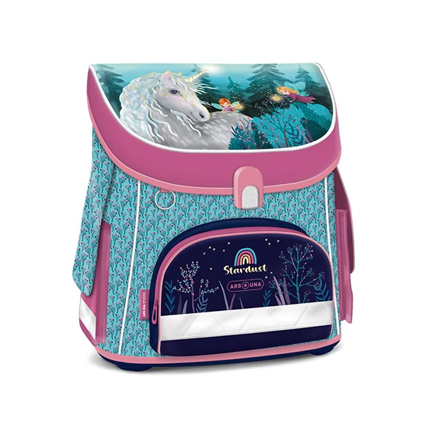 A Stardust egy egyedi iskolatáska, amelyik úgy kiváló minőségével mint külső kialakításával is kimagaslik. A kislányok örülni fognak ennek az élénk színű táskának, amelyiket egy unikornis és két tündér is díszít, hogy sosem legyél egyedül. Ezeket felsorolva mondhatjuk, hogy elképesztő külseje van, de a belső tulajdonságok is megemlíthetők , hiszen gerincbarát hátkiképzés és a párnázott csípőrész, valamint a három ponton állítható széles és puha vállpántok a kényelmességet biztosítják. A kemény alsó rész és a kiváló minőségű vízlepergető anyag strapabíróvá és időtállóvá varázsolja a táskát. Ez a hátizsák belül is rendkívül praktikus, hiszen egy nagy rekeszt találunk benne, egy textil elválasztóval, valamint egy kis cipzáras zsebet, kétoldalt egy-egy tépőzáras zseb, segít a rendszerezésben.