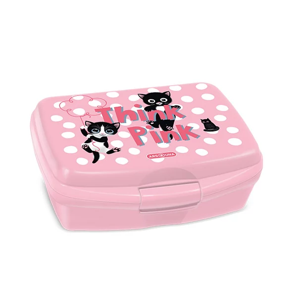A Think Pink műanyag uzsonnás doboz ideális választás mindennapi használatra, legyen szó iskoláról, óvodáról vagy kirándulásról. A 165x60x135 mm méretű doboz kompakt, mégis elegendő helyet biztosít az uzsonnáknak vagy ebédnek. A doboz cicás dizájnt kapott, ami vidámságot csempész a mindennapi étkezésekbe. Az uzsonnás doboz zárható, így a tartalma biztonságosan tárolható és szállítható, sőt az étel nem nyomódik össze a könyvektől, így az étel is gusztusosabb marad.