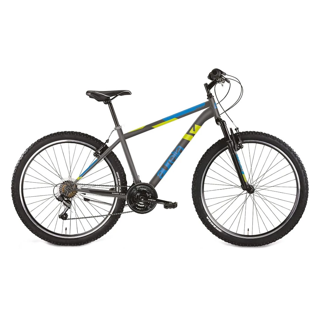 Az Aurelia márkájú 27,5-es kerékméretű mountain bike, elegáns szürke színben, sportos kék és zöld csíkokkal megjelenítve, egy univerzális választás, ami egyesíti a modern dizájnt a kiváló teljesítménnyel. Ez a bicikli ideális társ minden olyan kerékpáros számára, aki az elegáns megjelenést keresi a funkcionalitás mellett. A tartós váz és a kiváló tapadást biztosító terepgumik megfelelő stabilitást és biztonságot nyújtanak minden útviszony mellett. A precízen hangolt váltórendszer segítségével a kerékpározás minden helyzetben sima és hatékony, a kényelmes ülés pedig hosszú távon is komfortos marad. A kerékpár 27,5-es méretű kerekei remek egyensúlyt biztosítanak a gyorsaság és az irányíthatóság között.