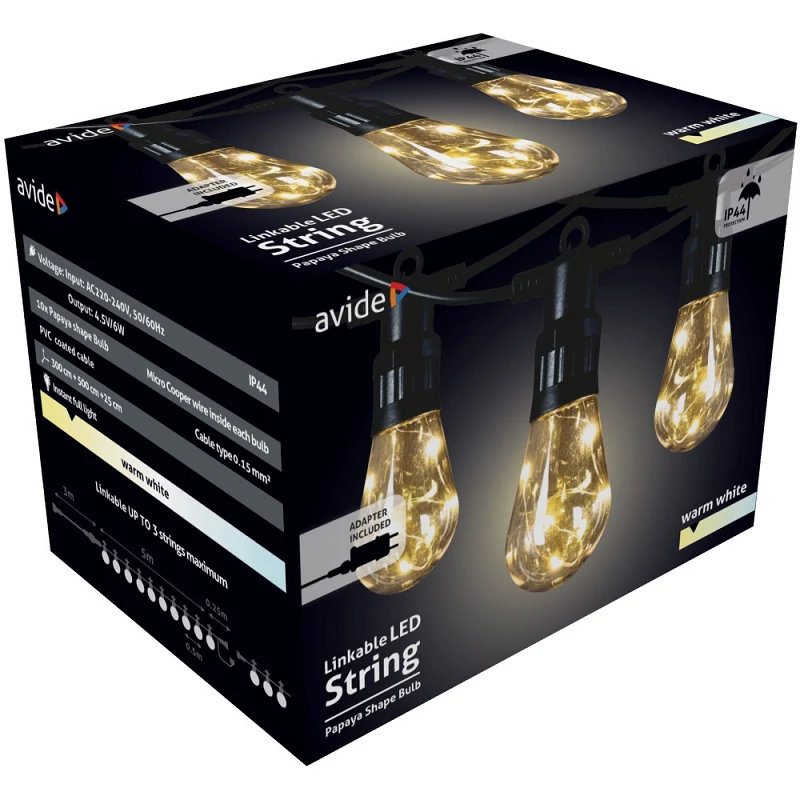 A "Avide Kültéri füzér 5m Papaya WW sorolható" egy nagyon praktikus és dekoratív termék, amely tökéletes választás lehet bármilyen webshop számára. Ez a kültéri füzér egy 5 méteres hosszúságú, papaya színű világító lánc, amely könnyedén felakasztható és szabadon variálható. A sorolható jellemzője lehetővé teszi, hogy a láncot igény szerint hosszabbítsuk vagy rövidítsük, így könnyedén alkalmazkodhat bármilyen területhez vagy dekorációhoz. A termék minőségi anyagokból készült, így tartós és időjárásálló, így akár kültéren is használható. A Papaya WW színválasztás pedig egyedi és friss megjelenést kölcsönöz a környezetnek. Bármilyen kerti vagy teraszdíszítéshez tökéletes választás lehet ez a füzér, amely garantáltan feldobja a hangulatot és vonzza a tekinteteket.