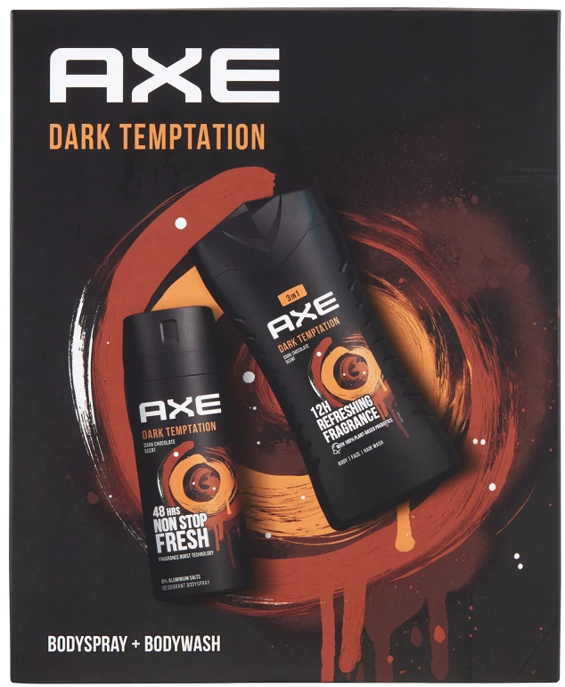 Szerezzen örömöt a férfi testápoló készítményekkel teli AxeDark Temptation kozmetikai készlettel. Minden külsejére adó modern férfi örül neki.