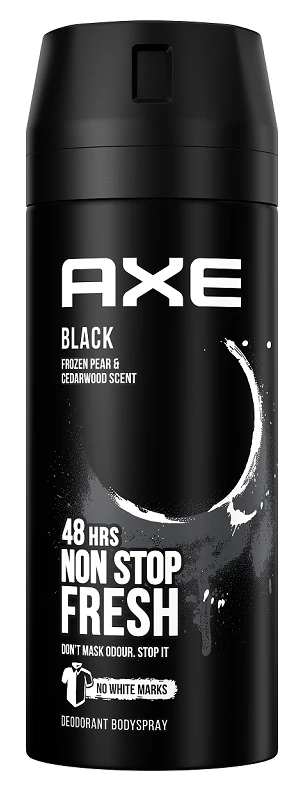 Axe Black alumíniumsó mentes aeroszol deo spray hosszantartó friss érzetet biztosít, miközben véd a a kellemetlen szagok ellen. A pénteki bulik legtutibb kiegészítője, ami biztosan segít, hogy álmaid nője észre vegyen: AXE. Ha kezdeményezni kell, az AXE biztosan nem hagy cserben.