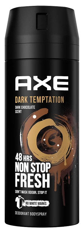A pénteki bulik legtutibb kiegészítője, ami biztosan segít, hogy álmaid nője észrevegyen: Axe Dark Temptation alumíniumsó mentes aeroszol. Csábító akár a csokoládé! Ha kezdeményezni kell, az AXE biztosan nem hagy cserben. Termékeink között ellenállhatatlan illatokat találsz, amik csak hozzáadnak a megjelenésedhez. A maximális vonzerőd eléréséhez próbáld ki az AXE termékeit, hogy igazán önmagad lehess.