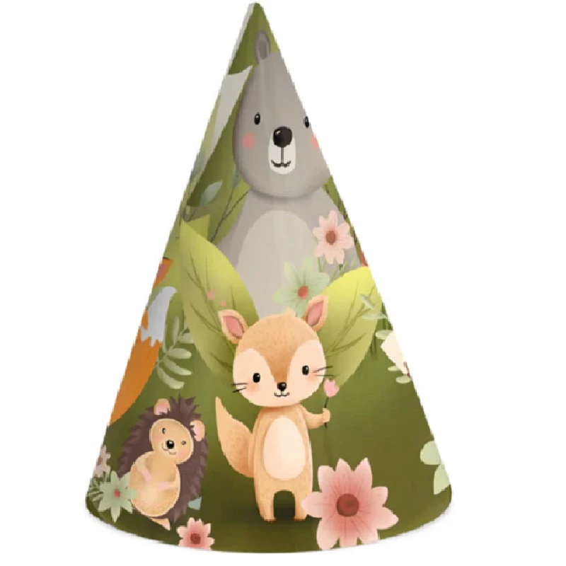 Az erdő állatai csúcsos party kalap 6db-os kiszerelésben