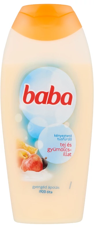 Élvezze a zuhanyzás relaxáló pillanatait a Baba tej és gyümölcsillatú tusfürdővel. Ez a tusfürdő tejet tartalmaz, mely ápoló tulajdonságáról ismert. A narancs, őszibarack, alma és feketeribizli illatharmóniája friss, gyümölcsös fuvallattal kényezteti érzékeinket. Használatával jól indulhat a napunk, és egy hosszú nap után is üdítő frissességet nyújt az egész családnak. A Baba tej és gyümölcsillatú kényeztető tusfürdő lágy habjával felfrissít, és üde illatot hagy maga után.