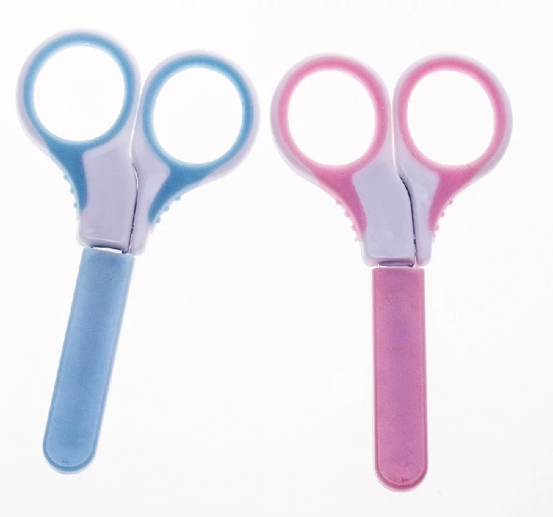 Olló babáknak, lekerekített élekkel, rozsdamentes acélból biztonsági tokba csomagolva. A csomag 1 pár ollót tartalmaz.