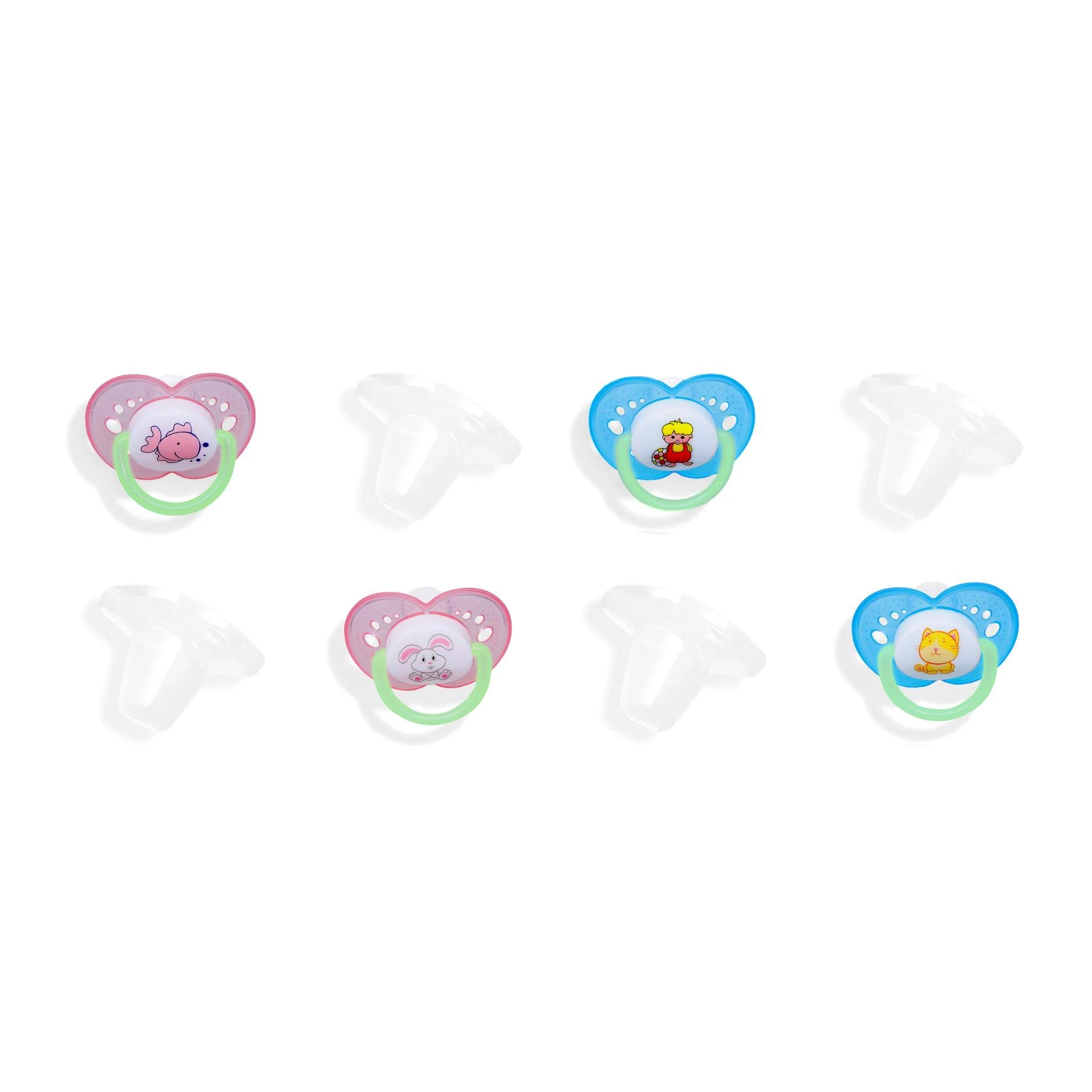 Kíváló minőségű 2db-os ortodontikus, BPA mentes, anatómiai formájú, szilikon játszócumi, védő kupakkal 0-6 hónapos korig, sötétben világító karikával. Egyedi kedves figurákkal, három különböző színekben kapható. Két különböző méretben elérhető: 1-es méret: 0-6 hónapos korig. 2-es méret: 6-18 hóapos korig