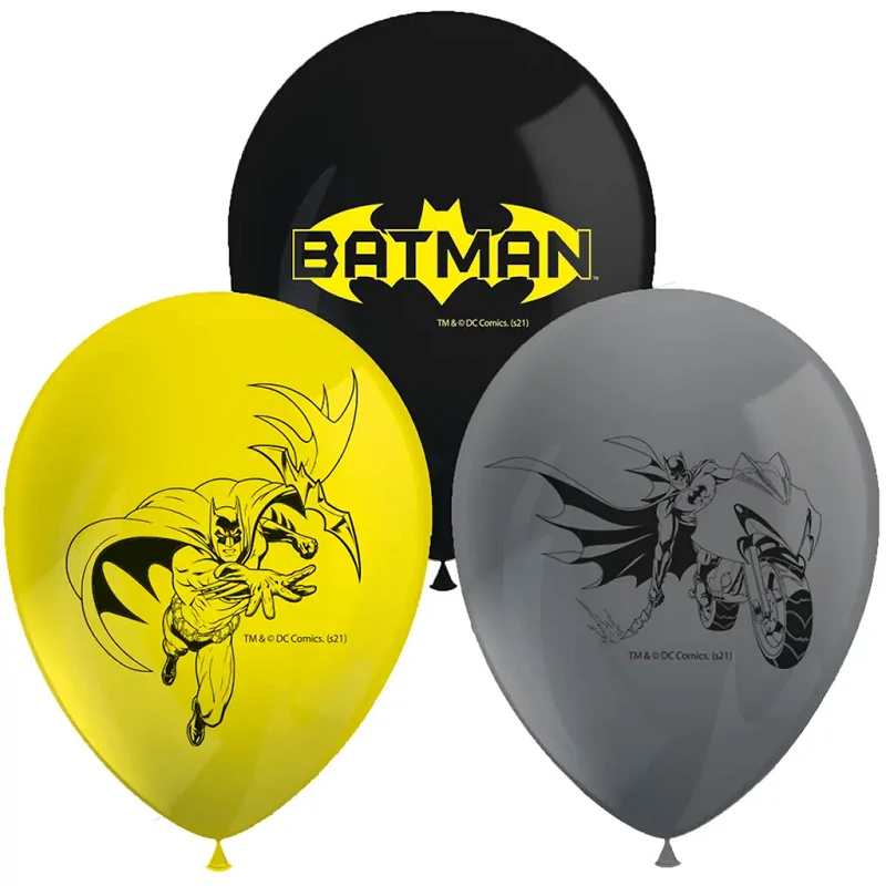 Varázsold a szülinapi bulit Gotham City közepévé ezekkel a látványos Batman mintás lufikkal! Az erőteljes sárga, fekete és szürke színekben pompázó 8 darabos lufi szett igazán karakteressé teszi az ünnepi dekorációt, miközben a részletgazdag Batman grafikák – köztük a klasszikus logó, motoros akció és a dinamikus szuperhős póz – garantáltan lenyűgözik a gyerekeket.