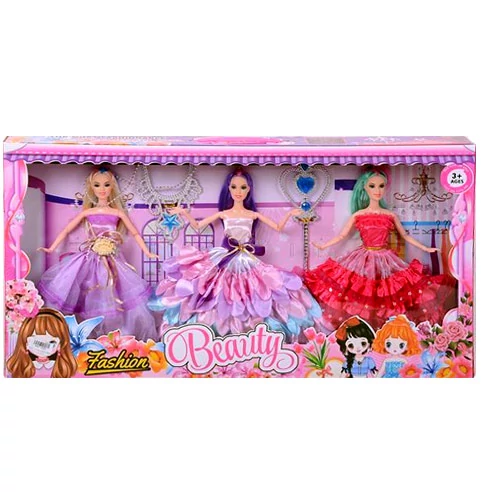 Három különböző babát szerezhetnek be a gyerekek a játékhoz ezzel a szuper szettel, amiben kis meglepetést is találnak. A doboz ugyanis egy kis jogart és nyaklánc ékszert is rejt, amit a kislányok felvehetnek játék közben, hogy ők is valódi hercegnővé váljanak. A babák mozgatható végtagokkal rendelkeznek, így könnyen megeleveníthetőek velük a szerepjáték különböző jelenetei. A hajuk hosszú és színes, így látványos frizurát készíthetnek nekik.