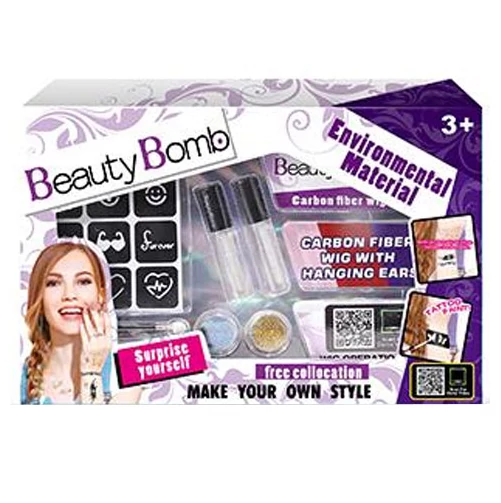 A Beauty Bomb csomaggal garantáltan le fogod nyűgözni a tizenéves kislányodat, hiszen a szettben nem csak csillámtetkók készítéséhez szükséges alapanyagok vannak, hanem három színes hajtincs is, amivel a frizurájukat tudják feldobni anélkül, hogy a saját hajukat kéne megfesteni. A csillámtetoválások elkészítése rendkívül egyszerű, csak ki kell választani a megfelelő sablont, amin keresztül a ragasztót fel lehet vinni a bőrre, majd bele kell szórni a csillámos port, és máris kész a vagány csillámos minta.