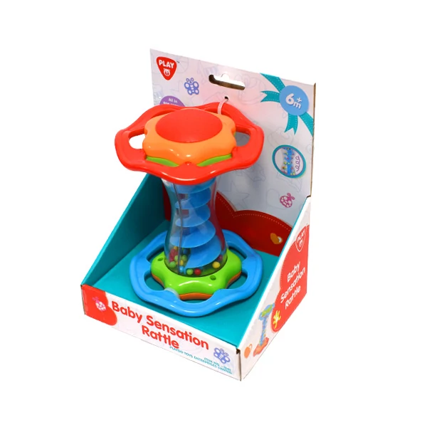 Ez a különleges csörgő játék garantáltan leköti a gyerekek figyelmét hiszen az élén és vidám színek mellett a középső rész átlátszó anyagból készült, így a gyerekek figyelemmel kísérhetik, ahogy a játékon belül apró színes golyók miként gördülnek végig a spirálos pályán. A játék az élénk és vidám színeivel ösztönzi a babát arra, hogy foglalkozzon vele, így játék közben máris megkezdődhet a felfedezés, a különleges kialakításnak köszönhetően pedig fejlődik a kicsik motorikus készsége is.