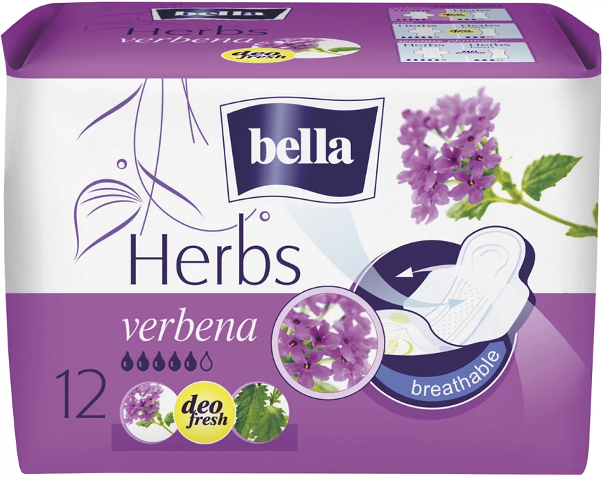 A gyógyfüvek kivonatával gazdagított Bella Herbs egészségügyi betét az egészségtudatos nő választása. A betét különösen puha és kényelmes borítást kapott, mindössze 4 mm-es kivitelével pedig átmenetet jelent az ultravékony és a standard, vastag betétek között. A fehérneműhöz szárnyakkal rögzíthető. Megnövelt nedvszívó kapacitásának köszönhetően fokozott menstruációs védelmet nyújt. A betét légáteresztő tulajdonsággal is rendelkezik, így intim testtájékon a tartós frissesség élményét adja. Elérhető hársfavirág (tilia), vasfű (verbena), és illatmentes lándzsás útifű (plantago) változatban. A vasfű gyulladáscsökkentő, nyugtató, a menstruációs ciklus zavarait enyhítő hatású.