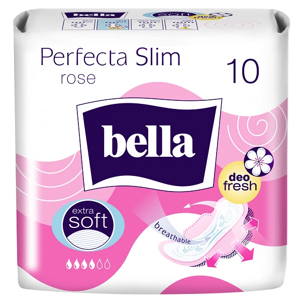 Ultravékony, illatosított Bella egészségügyi betét selymesen puha szálfátyol (softiplait) borítással. A fehérneműhöz szárnyak segítségével rögzíthető